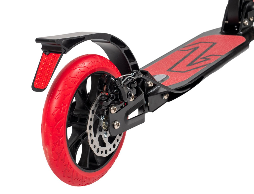 A robogó gumi kerekekkel és tömör abroncsokkal rendelkezik, amelyek átmérője 200 mm.Fel van szerelvemanuális hátsó fékkel , így a lábával a hátsó sárvédő felett fékezhet. Az összecsukható gumi markolattal ellátott kormányt kényelmes lesz tartani. Könnyedén beállíthatod őket a magasságodnak megfelelően. A robogó 14 éves kortól használható, maximum 190 cm-es magassággal.