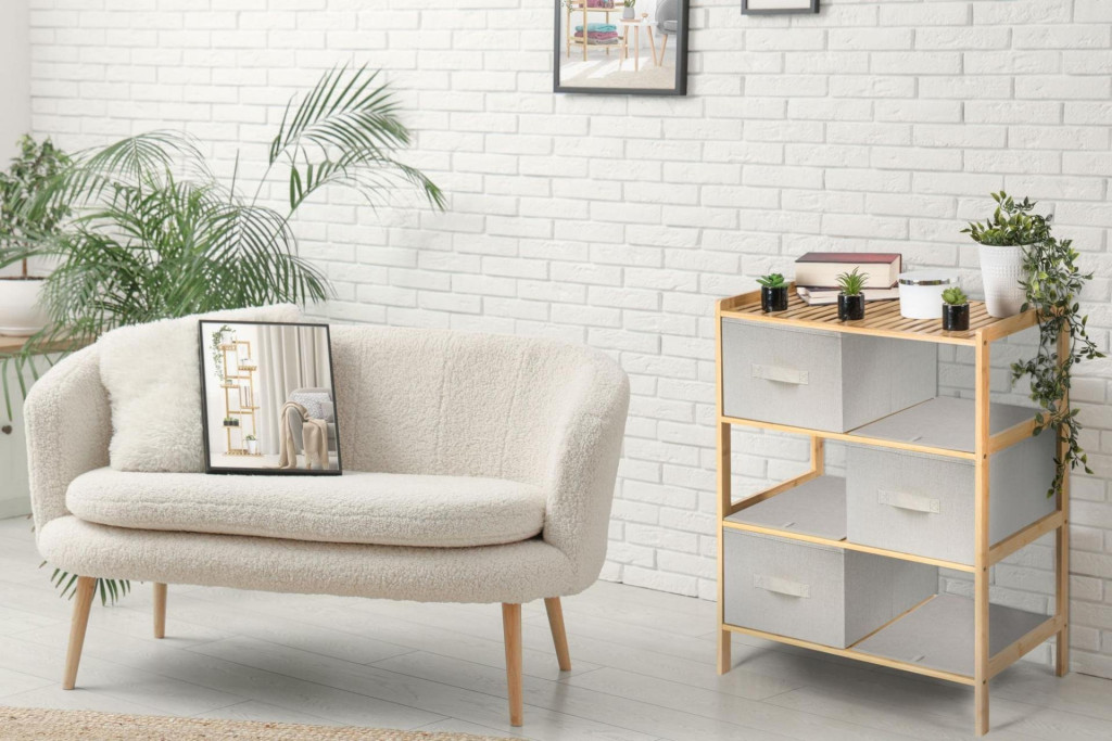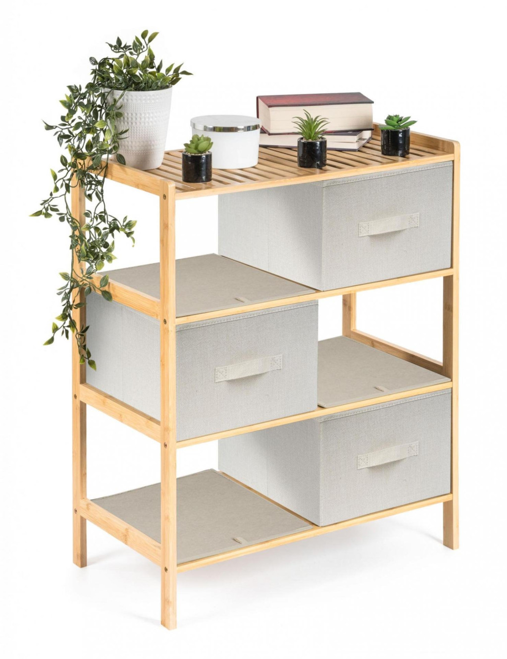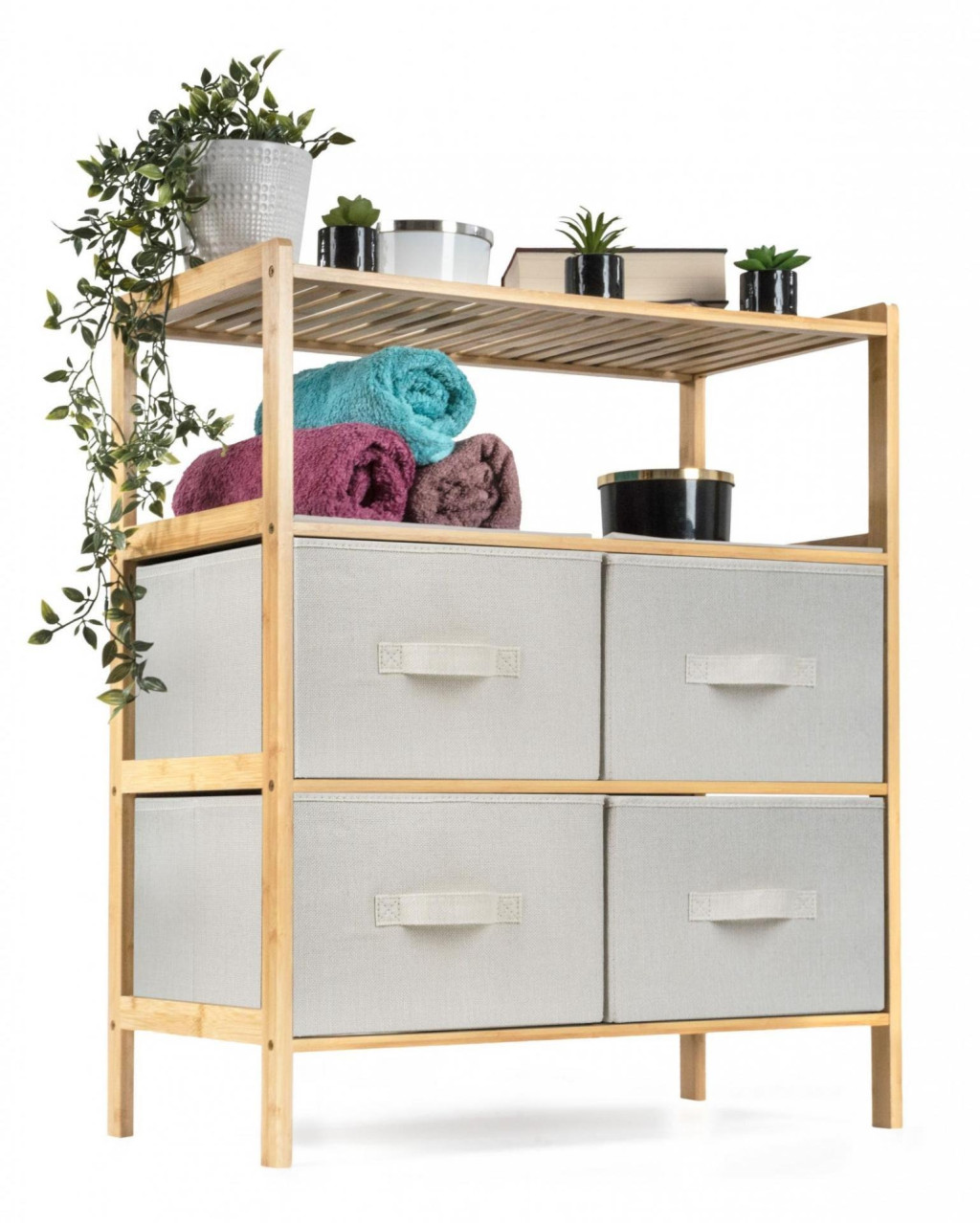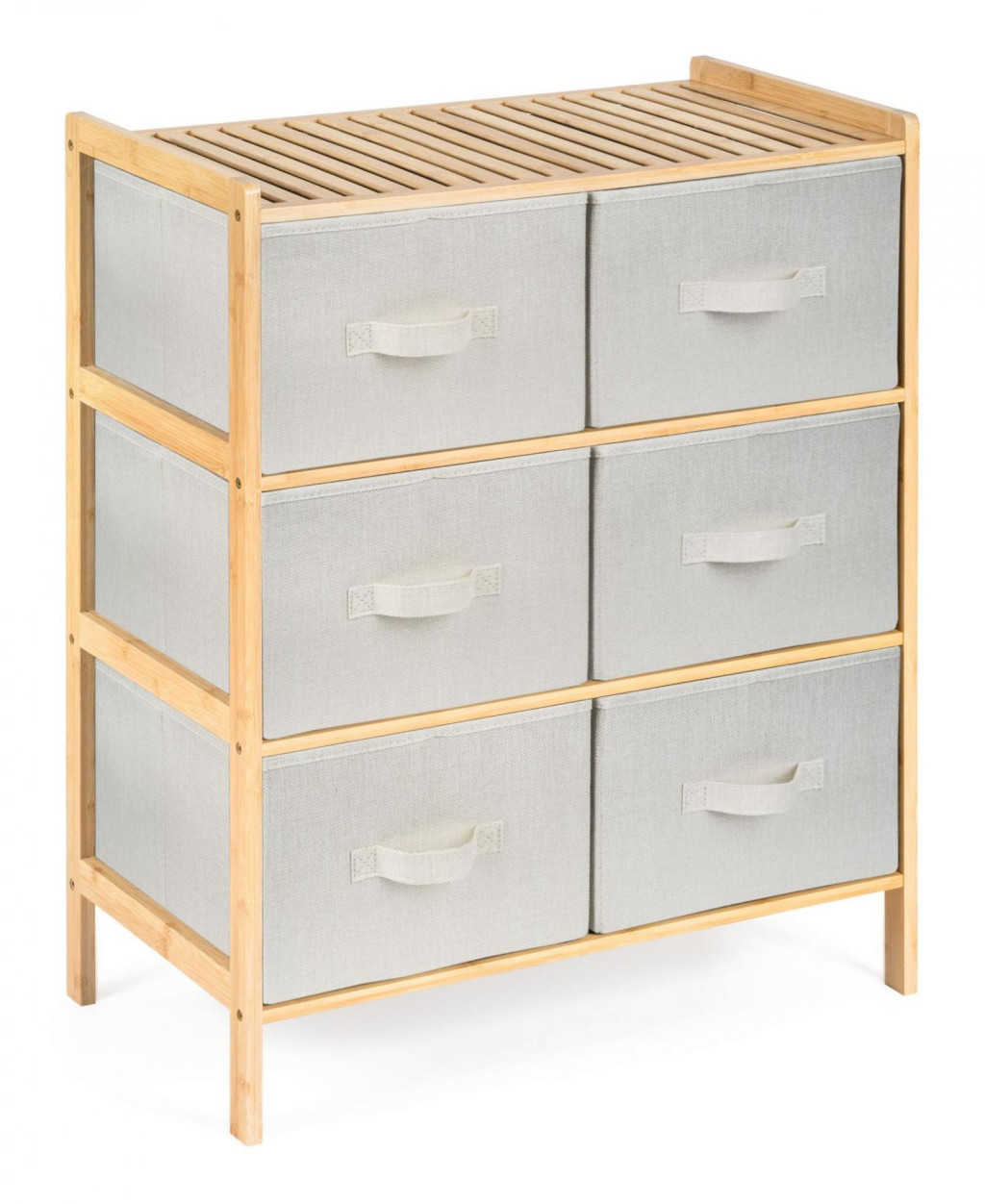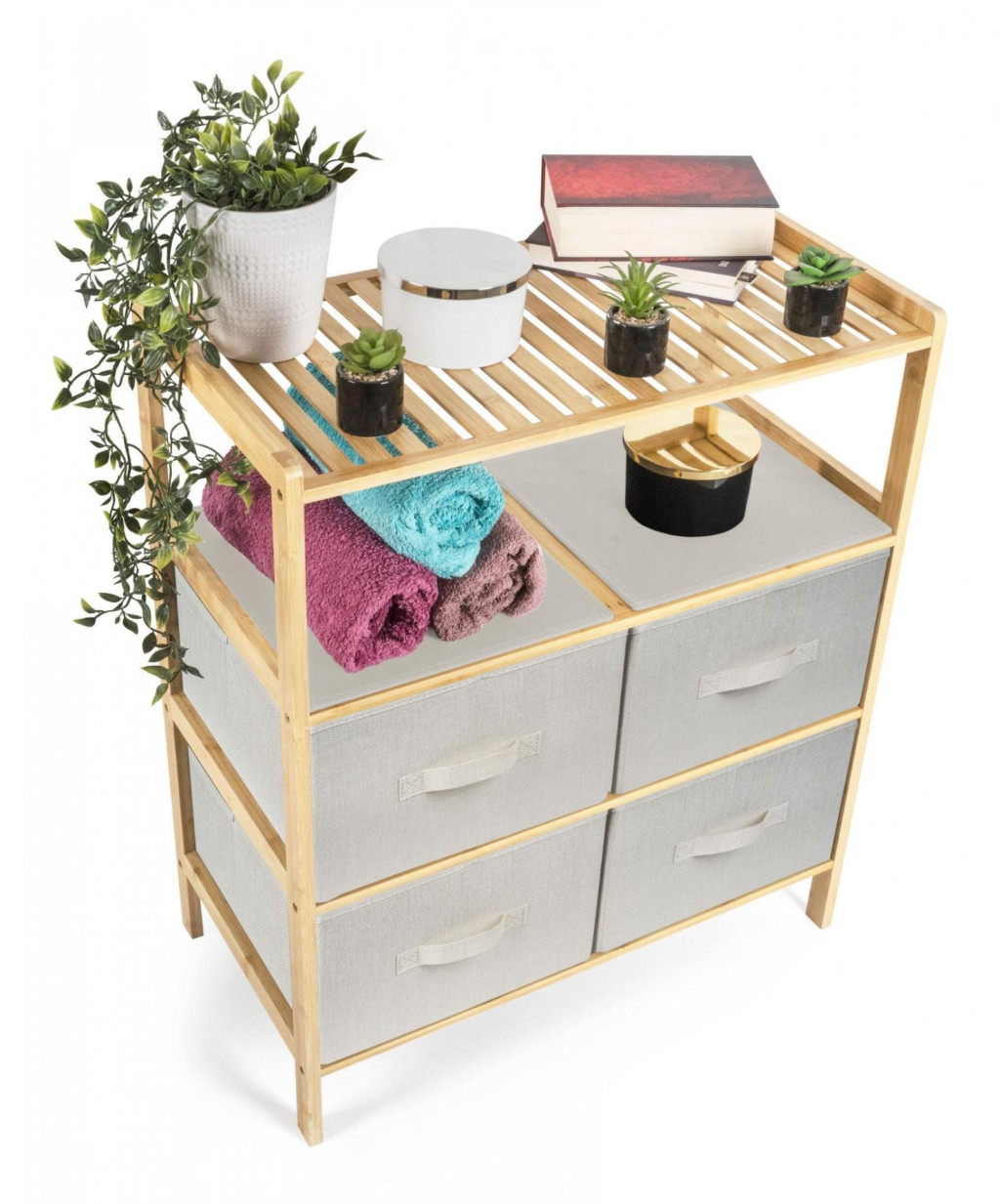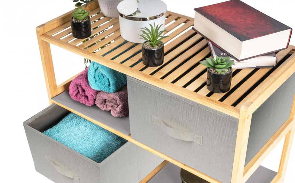 A kihúzható szövetfiókokkal ellátott bambuszpolc kellemes természetes tapintást kölcsönöz a belső térnek, könnyedség és természetesség érzetét, ereje és hosszú élettartama pedig stabilitást és tartósságot biztosít.