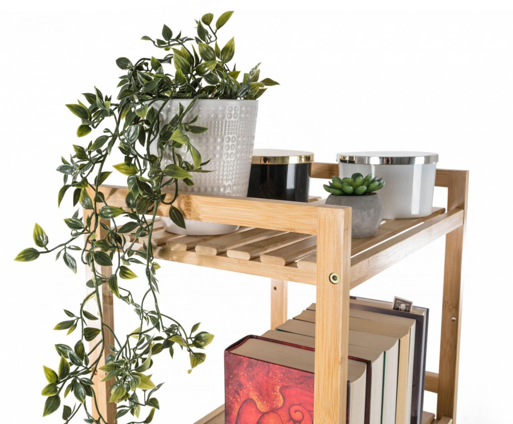 A három polcos bambusz polcállvány kellemes, természetes hangulatot kölcsönöz a belső térnek, könnyedség és természetesség érzetét, ereje és hosszú élettartama pedig stabilitást és tartósságot biztosít.
