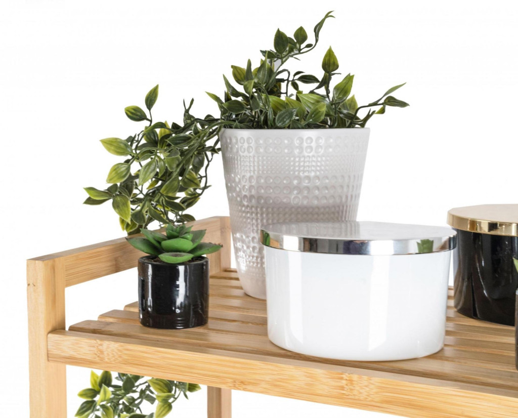 A bambusz meglepően könnyű, így könnyedén kezelheti az egész állványt a polcokkal. Ugyanakkor elég erős ahhoz, hogy elviselje a nagyobb terhelést. Emellett a bambuszfa egyik kiváló tulajdonsága az hogy ellenáll a nedvességnek és a természetes rezisztenciája a baktériumokkal és gombákkal szemben , így nem kell aggódnia az elhelyezés miatt. a fürdőszobában vagy a mosókonyhában.