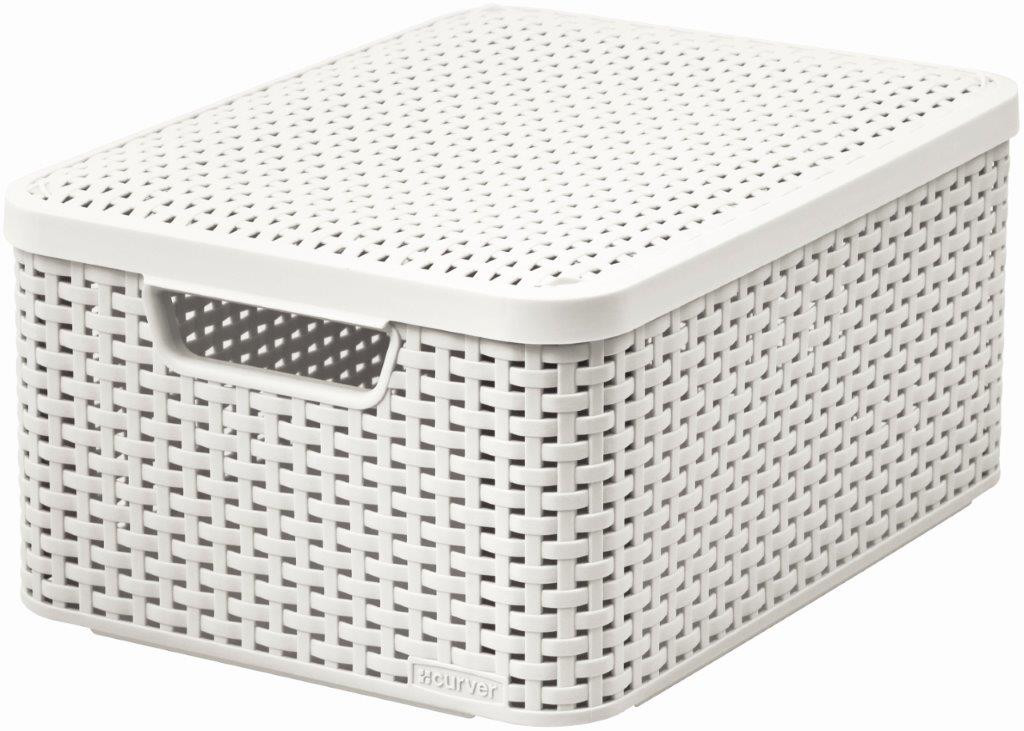 A fehér színű Curver Style M doboza 70%-ban újrahasznosított műanyagból készült. A 18 literes láda praktikus fedéllel rendelkezik. A dobozokat akár egymásra is pakolhatja.