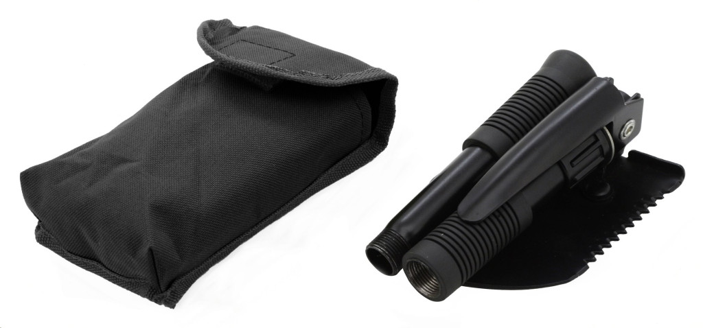 A lapát könnyen összeállítható az egyes részek összecsavarásával. Elég kiválasztani a megfelelő eszközt és előfeszítését, utána egyszerűen rögzítheti a nyélen lévő anyát. Ez mindenellenálló zöld tokban van elhelyezve, amelyet könnyen rögzíthet az övre, tehát a lapát mindig kéznél lesz.