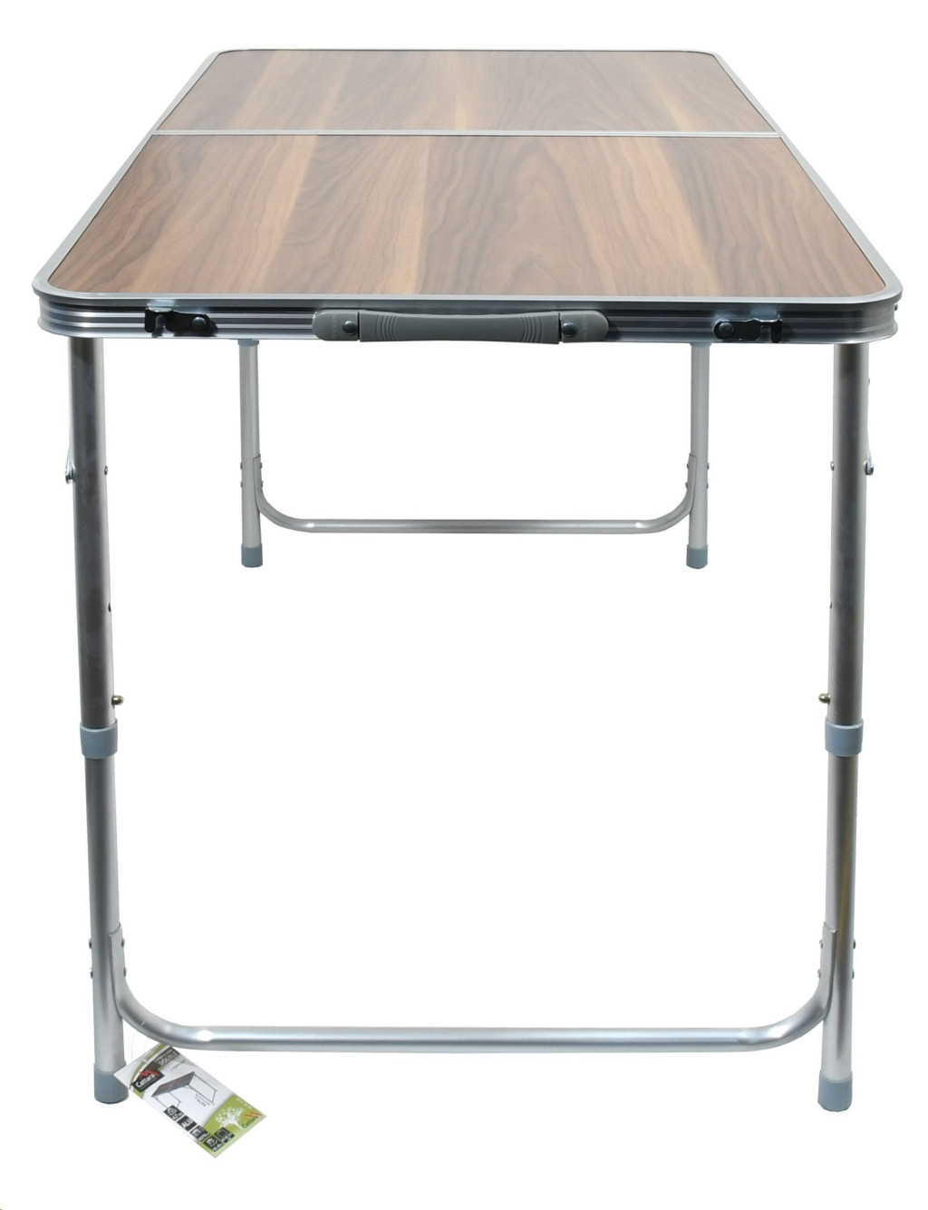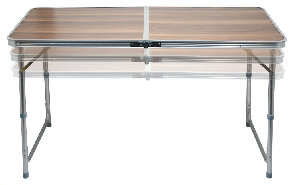 Az asztal felülete merev umakart deszkából készül, amely ellenálló és egyenes alapot nyújt. A deszka felület ráadásul könnyen tisztítható. Az asztal így használatra talál a kertben vagy kempigezésnél. Nagy előnye, hogy könnyen tárolható. Az oldalán lévő fogantyúnak ésaz alacsony súlyának köszönhetően könnyen áthelyezhető bárhova, ahova épp eszébe jut.