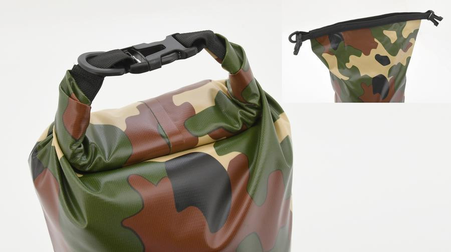 Védje értékeit és felszerelését a Cattara DRY BAG vízálló táskával. Egyszerűen töltse meg a terepszínű táskát, és háromszor csavarja el a zárást, hogy a csattal rögzítse. Ez biztosítja a biztonságos zárást. A csatos zár egy hurkot hoz létre a könnyű tartás és hordozás érdekében. A táska vállpánttal is fel van szerelve a könnyű hordozás érdekében. A táska magassága 45 cm, átmérője 20 cm. Súlya 340 g.