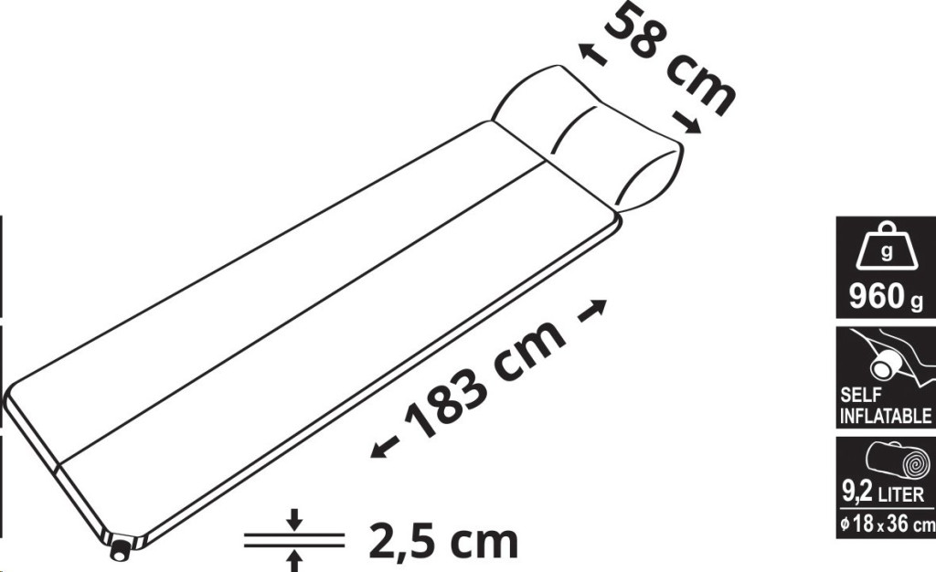 - Méretek: 183 x 58 x 2,5 cm
