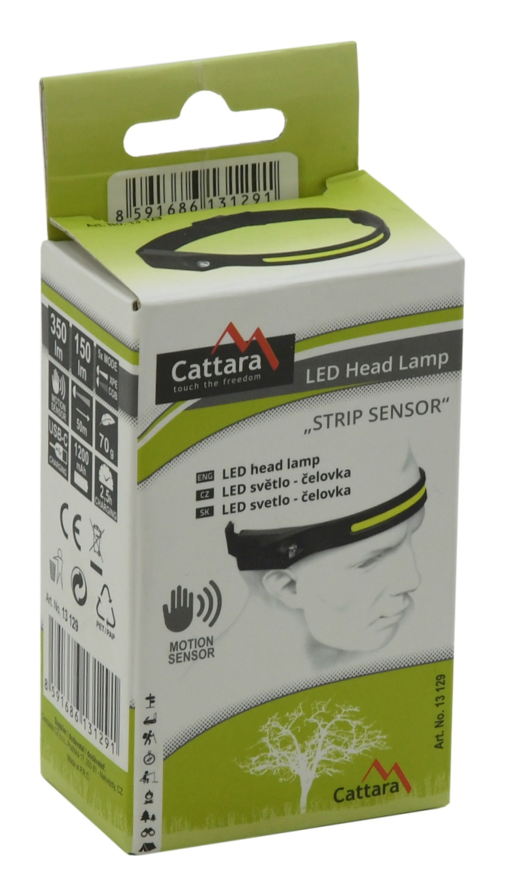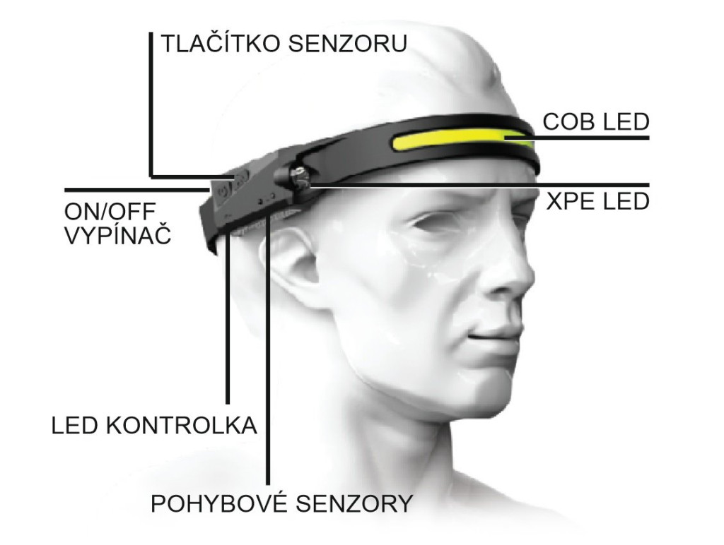 - 1x LED-es fejlámpa Cattara STRIP SENSOR 350lm újratölthető