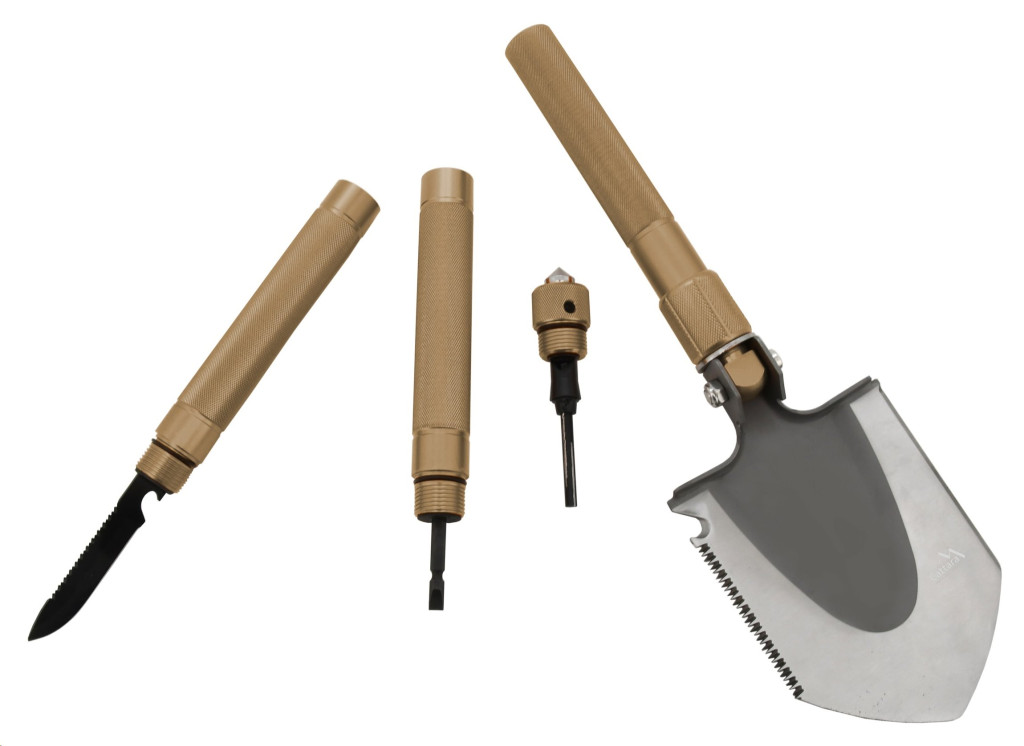A lapát használható szokásos (hagyományos) módon, de más kiegészítői is vannak - kereszt és lapos csavarhúzó, kés fűrésszel és sörnyitóval, tűzcsiholó és síp. Ezek az innovációk a csúszásgátló nyélben vannak elrejtve, ami tökéletesen illik a kézbe és kiválóan kezelhető. Jól jöheta nyél végén található üveg vésztörő.