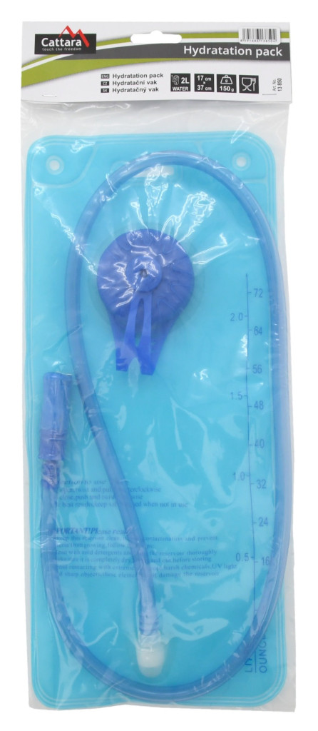 Túrázzon a vidéken. Csomagolja a Cattara hidratáló zsákot a hátizsákjába, amely megkönnyíti a folyadékpótlást útközben. A táskában akár 2 liter víz is elfér. A méteres tömlő végén egy szilikon kivezetőnyílást talál. A kényelmes iváshoz nyomja meg a tömlő végét a szájával. Így nem kell minden alkalommal elővenni a zacskót, amikor megszomjazik. Csak nyomja vissza a kifolyócsövet a helyére. Nem folyik ki a víz.