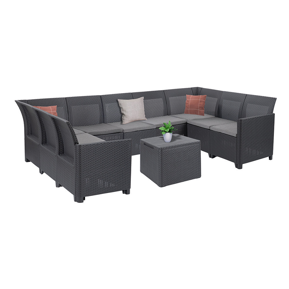 Claire VII 9 személyes sarokgarnitúra párnatartós asztallal grafit