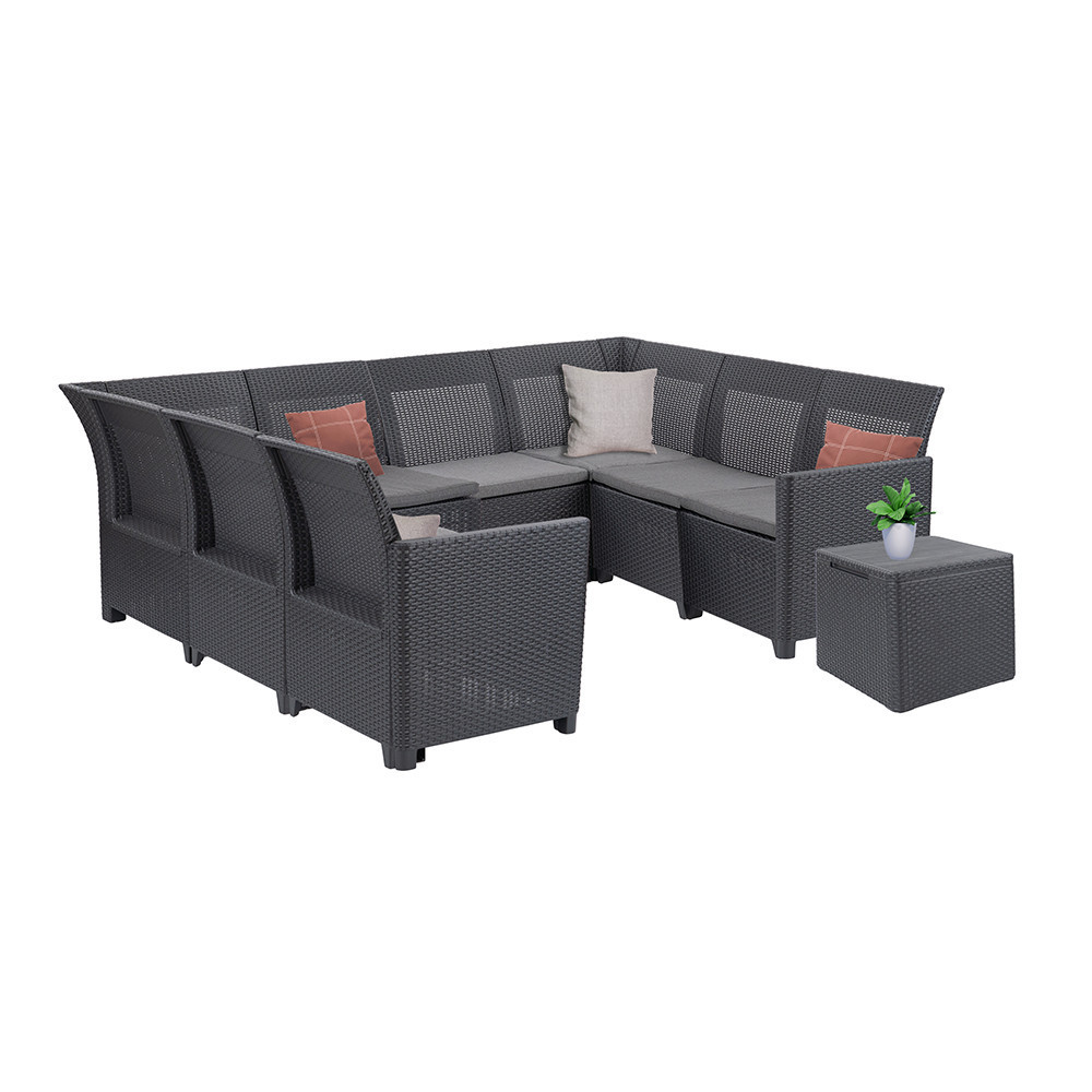 Claire VIII 8 személyes sarokgarnitúra párnatartós asztallal grafit