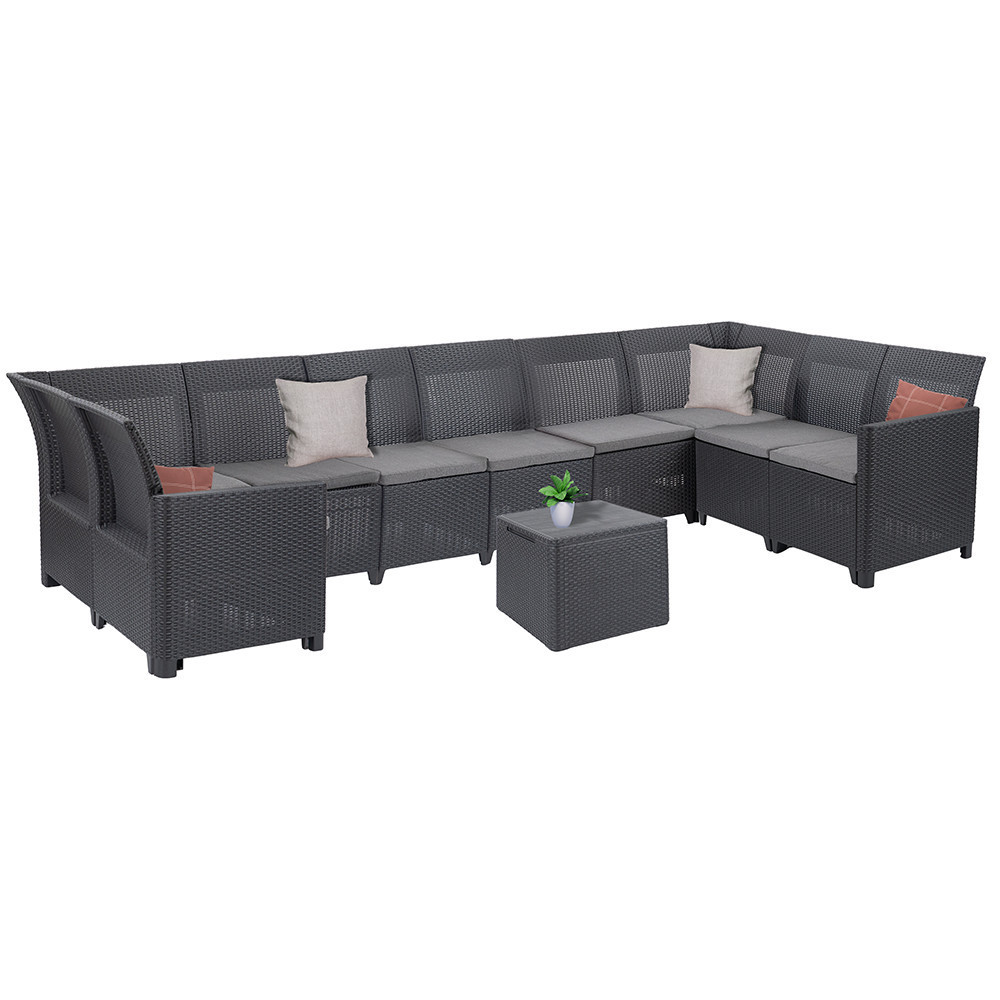 Claire VIII 9 személyes sarokgarnitúra párnatartós asztallal grafit