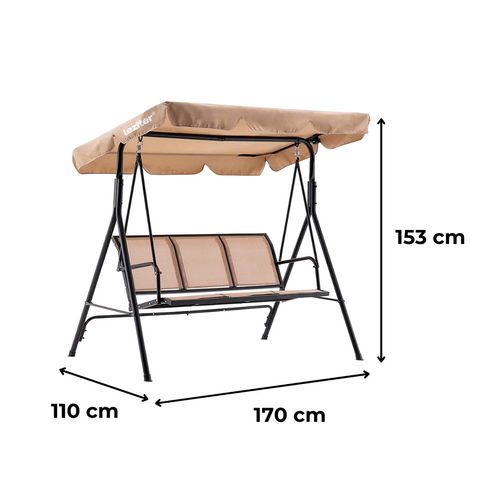 Ez a háromszemélyes, masszív hintaágy tökéletes választás kertbe, teraszra vagy akár nagyobb erkélyre. Egyedülálló stabilitását az erős, acél váz biztosítja. A Como kerti hintaágy 170x110x153 cm-es. Az ülőtámla magassága 54 cm, ülőszélessége és mélysége 130x48,5 cm, melynek köszönhetően bőséges helyet biztosít a kényelmes pihenéshez, miközben maximális teherbírása 250 kg, így akár hárman is kényelmesen hintázhattok rajta.