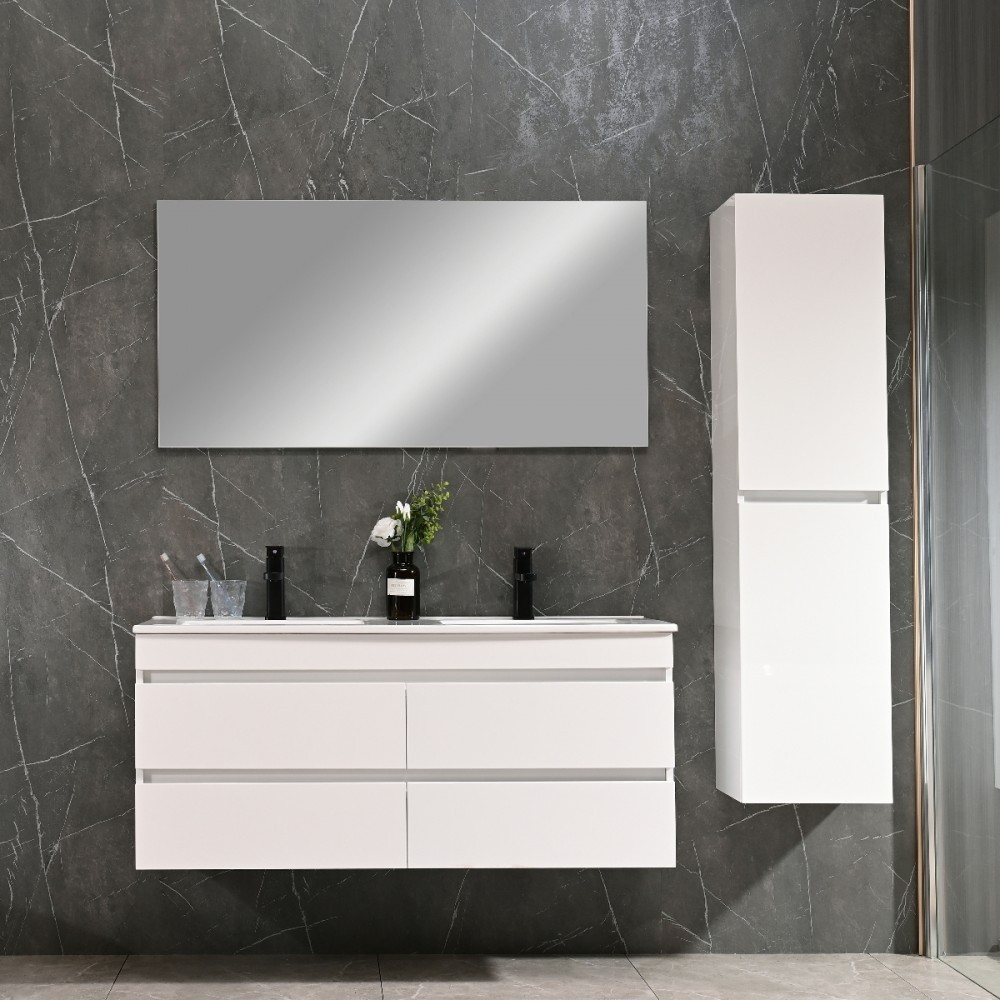 A funkcionalitás mellett természetesen a bútor megjelenésére is nagy figyelmet fordítottak. Magasfényű fehér színének és letisztult modern vonalainak köszönhetően harmóniát teremt az összes fürdőszoba hangulatában.