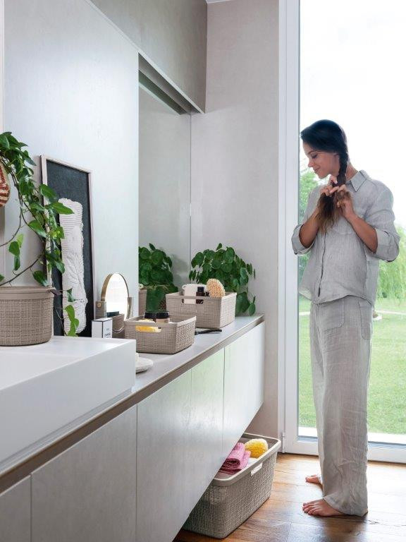 Ez a stílusos és praktikus doboz 100%-ban újrahasznosított műanyagból készül, így környezetbarátabb megoldás. Kialakítása szövetre emlékeztet, és tökéletesen illeszkedik bármilyen környezetbe. Kiegészíti a konyha, nappali, hálószoba vagy akár a fürdőszoba berendezését is.