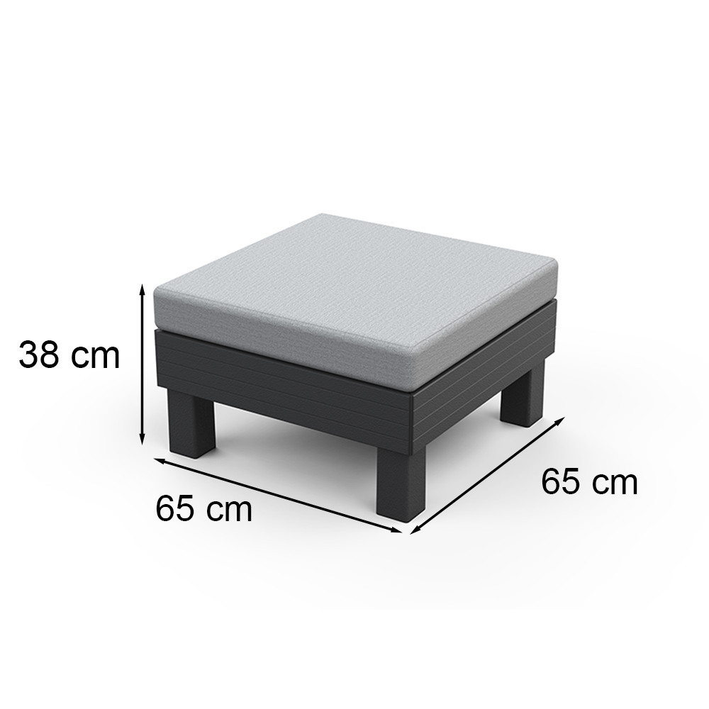 A 65 cm x 65 cm méretű és 29 cm asztal magas minőségű, időjárásálló anyagokból készült, amelyek garantálják a hosszú élettartamot és az egyszerű karbantartást. Az UV-sugárzással szembeni ellenálló képessége révén az asztal színe nem fakul, és a kültéri használat során is megőrzi minőségét.