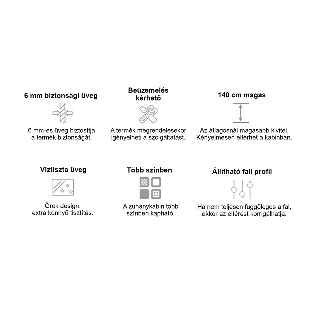 A terméket akár szakszervizes beépítéssel is megtudja rendelni, így az összeszerelésen sincs oka aggódni! 6 mm-es edzett biztonsági üveggel van ellátva. A funkcionalitás mellett természetesen a kádparaván megjelenésére is nagy figyelmet fordítottak. Üvegfelületének és letisztult, modern vonalainak köszönhetően elegáns megjelenést teremt minden fürdőszábának. A kádparavánt íves kialakításúra tervezték a biztonságos tusolás érdekében.