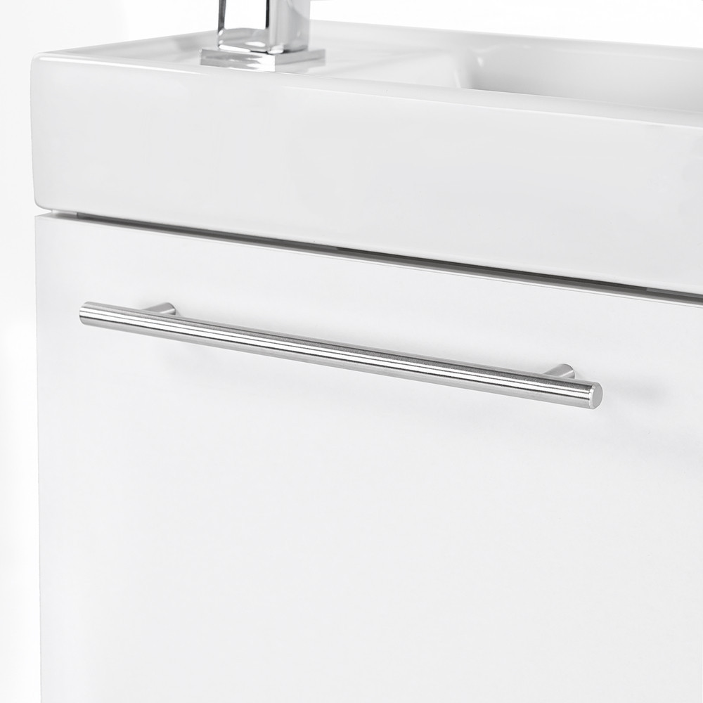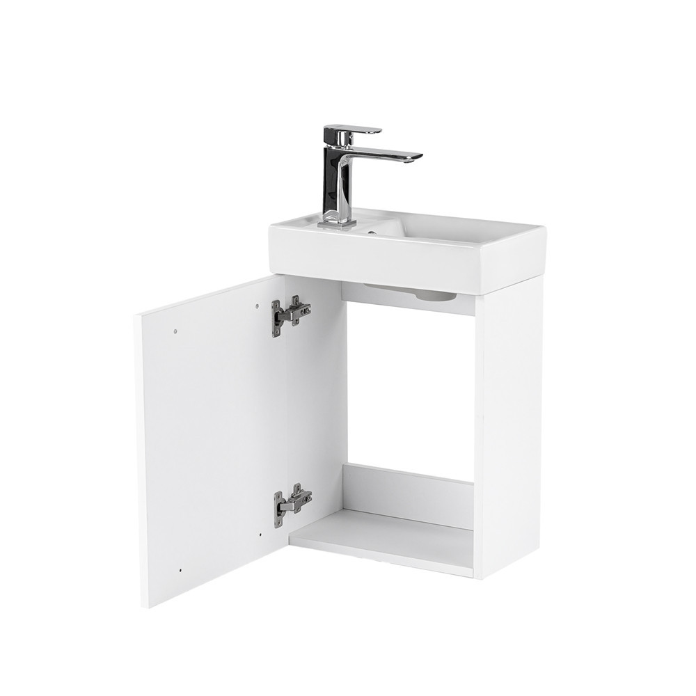 Kis helyigényű minőségi fürdőszoba bútor kisebb fürdőszobákba, vagy mellékhelyiségbe tökéletes kézmosónak. A termék kiváló minőségű bútorlapból készül és színben passzoló élzárókkal van ellátva. A fürdőszoba bútor felfüggesztett kivitelben kapható. A mosdó fehér öntött márvány.