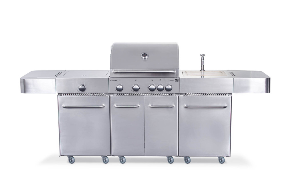 A G21 BBQ Arizona nem csak egy egyszerű grill, de tökéletes kerti konyha, amelynek semmije sem hiányzik. Gáz égőfejek Flame Tamer rendszerrel, mosogató az edények kényelmes leöblítésére, tágas munkafelület az ételek elkészítésére és tökéletesen kialakított tároló hely.