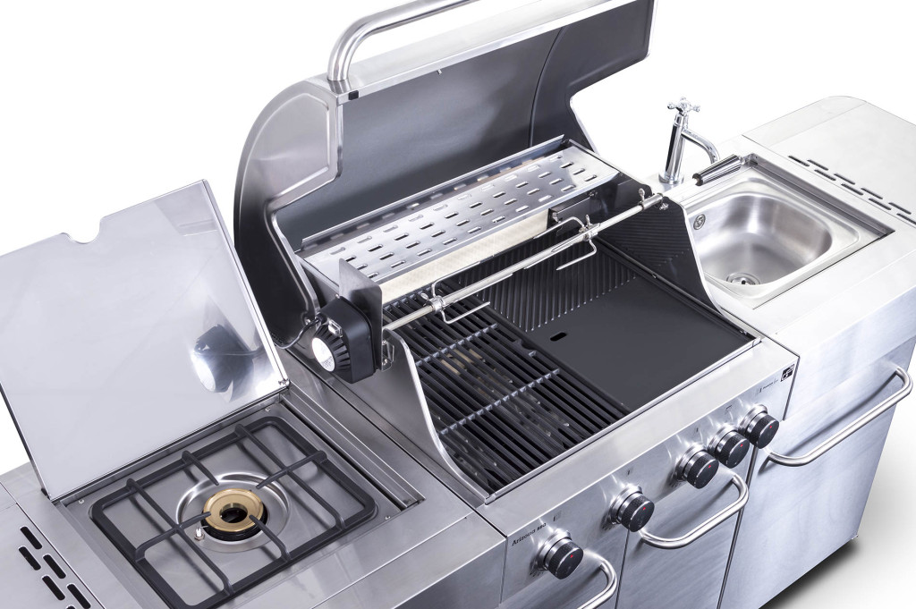 Az öt fő égő közül az egyik kerámia, mely azonnal magasabbhőmérsékletet biztosít. A hatodik égő a grill oldalán van. Tűzhelyként is használhatja. A grillezett húshoz étvágya van párolt zöldségre? Szeretne a gyerekeknek palacsintát készíteni friss gyümölccsel a szabadban? Megoldva.