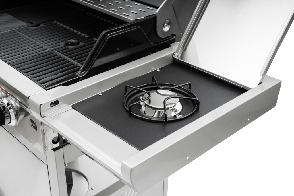 A kerti gázgrill egy csuklós fedéllel rendelkezik, mely lefedi az összes égőt,továbbá mindkét oldalán polcok találhatók.A bal polc alatt egy tárolóedény van, amelybe előkészítheti például a grillezni kívánt bepácolt húst.A jobb oldali polc alatt egy oldalsó égő található. A grill kiváló minőségű rozsdamentes acélból készül.