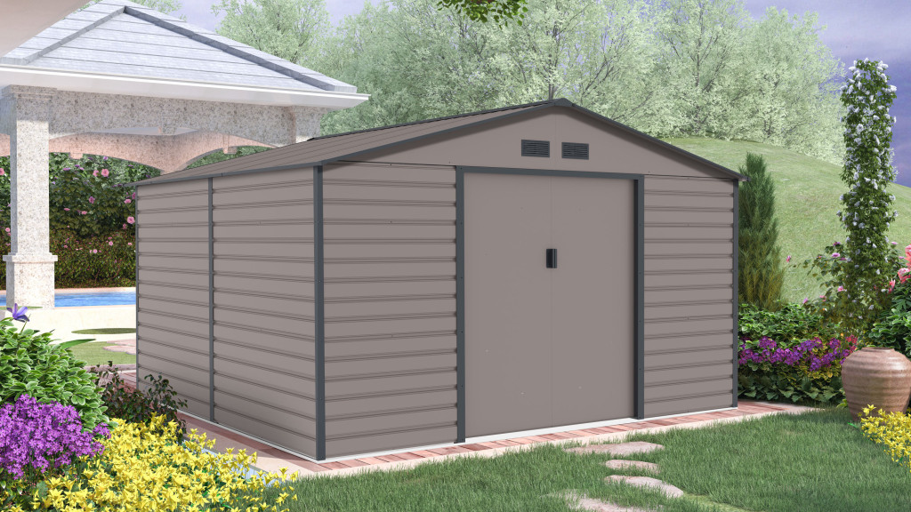 A modern dizájnnak köszönhetően ezek a kerti tárolók minden kertbenjól mutatnak. A kerti tároló bejárati ajtaja elegendően széles, ezért a tárolóba kényelmesen elhelyezheti a szerszámait, kerti talicskáját és a kültéri bútort is.
