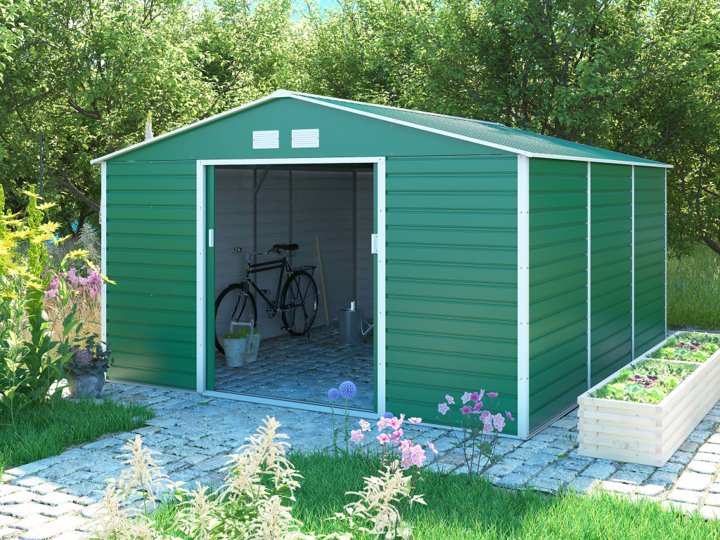 A modern dizájnnak köszönhetően ezek a kerti tárolók minden kertbenjól mutatnak. A kerti tároló bejárati ajtaja elegendően széles, ezért a tárolóba kényelmesen elhelyezheti a szerszámait, kerti talicskáját és a kültéri bútort is.