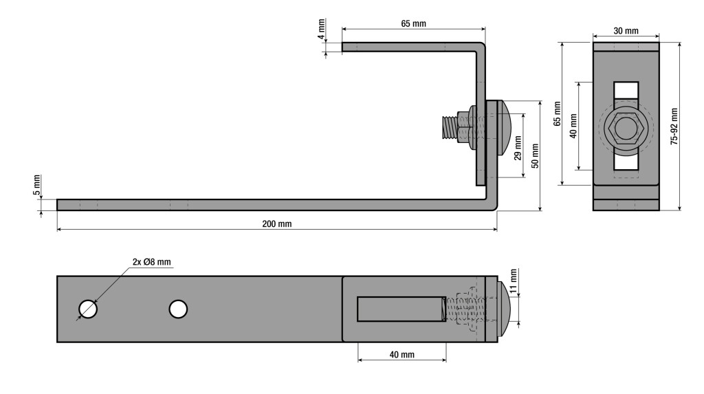 - A horog méretei (hossz x vastagság x szélesség): 200 x 5 x 30 mm