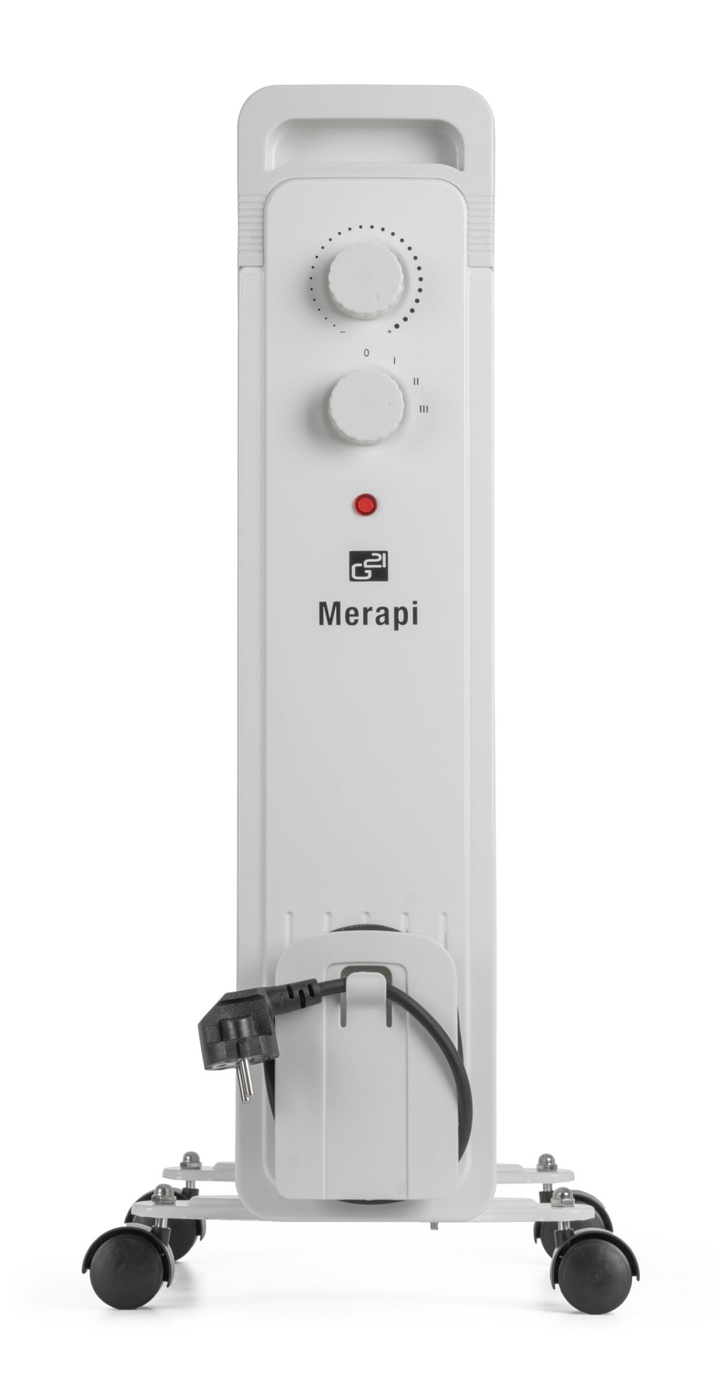 A G21 Merapi elektromos olajradiátor kifűti a nyaraló helyiségeit, egy hálószobát alváshoz, hűvös helyiségeket egy lakásban, egy műhelyt vagy garázst. Az olajradiátorok előnye a hosszabb fűtés, mert a felhalmozott hő tovább sugárzik belőle, mint a hagyományos elektromos fűtőtestekből vagy radiátorokból.