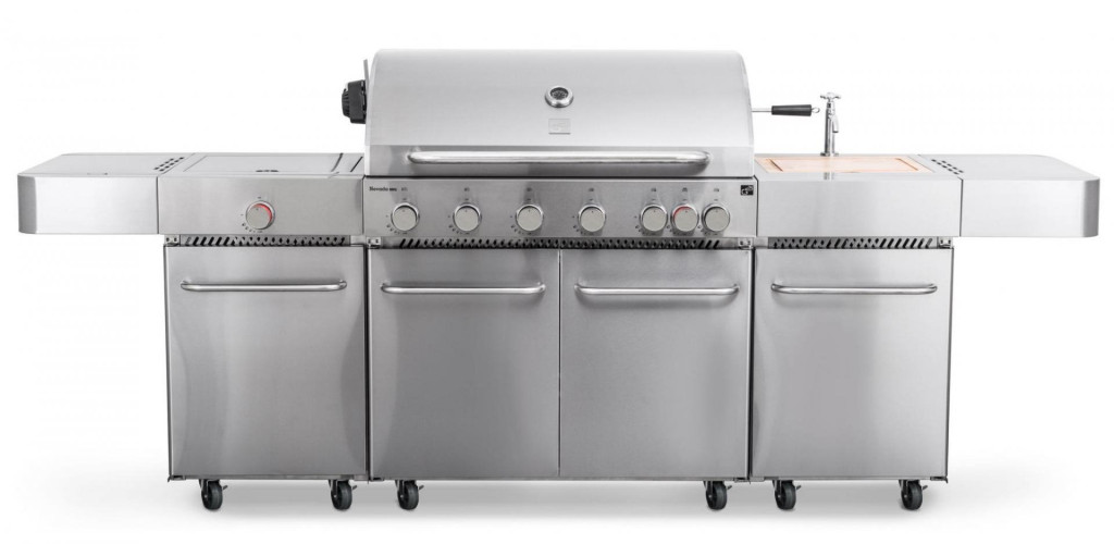 2020 újdonsága, 6 főégőfejjel, 1 oldalsó égőfejjel és 1 infravörös égőfejjel. A Nevada grillező konyha 8 égőfejjel, beépített mosogatóval, fedéllel, vágódeszkával és nagy munkafelülettel, ötletesen kialakított rakodó felülettel, a fedelében beépített hőmérővel Flame Tamer rendszerrel és meghoszabbított garanciával rendelkezik.