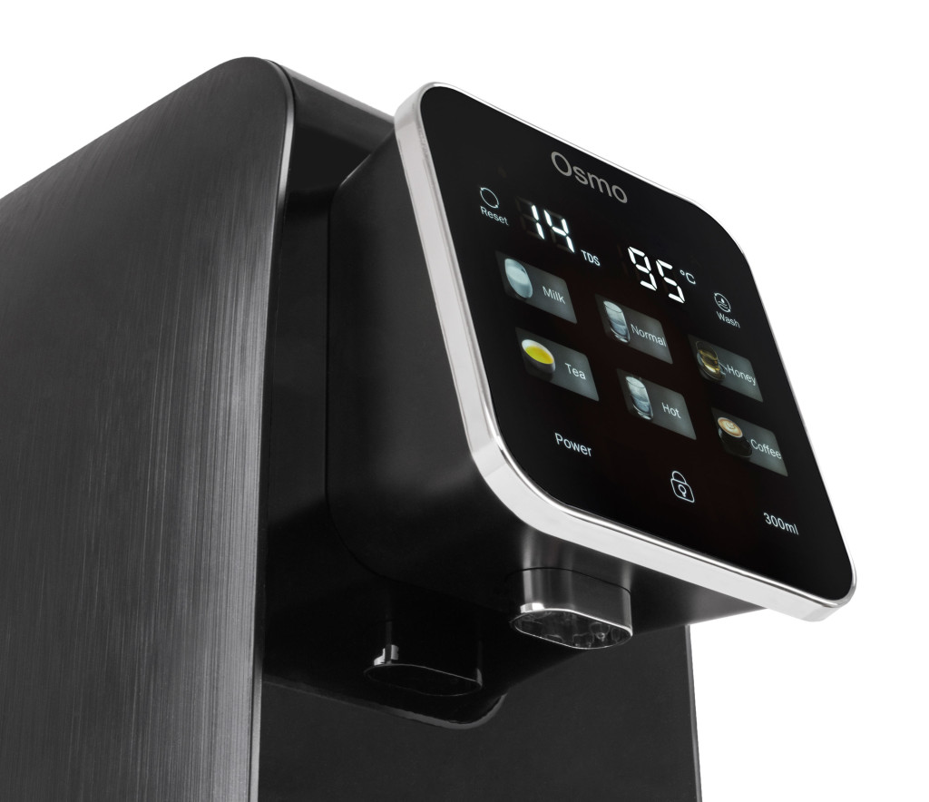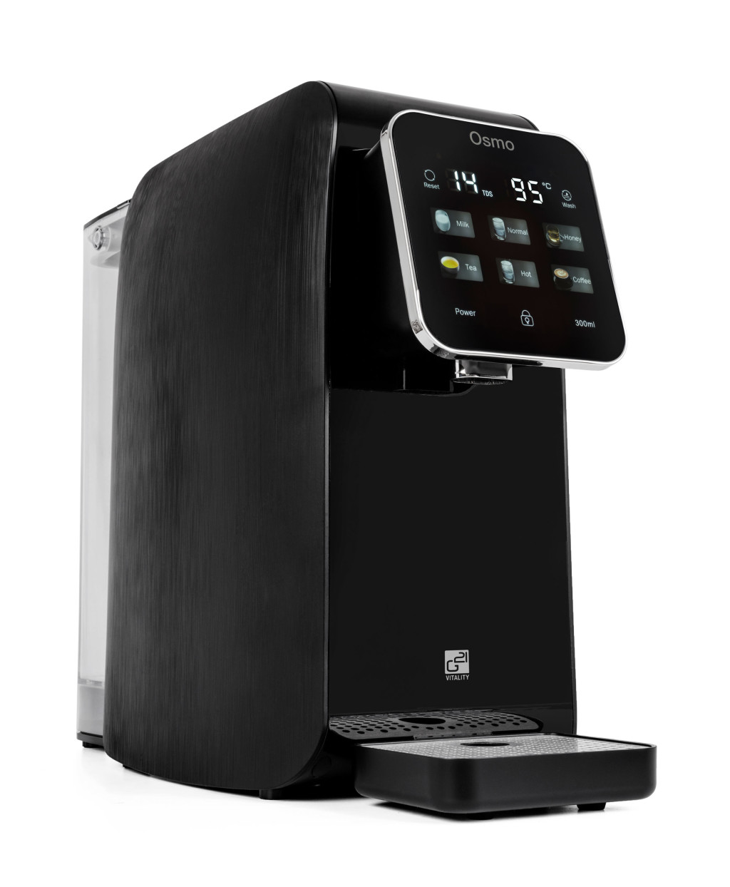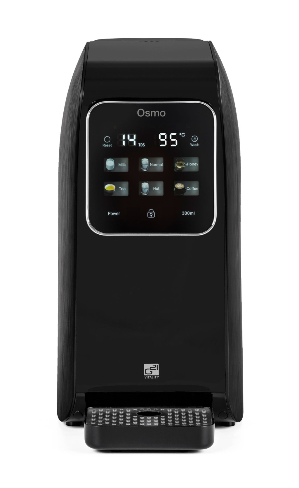 Szűrési sebesség – óránként akár 7,8 liter tiszta víz biztosításával a G21 Osmo kielégíti az egész háztartás igényeit2200 W teljesítmény – a vízmelegítés még sosem volt ilyen gyors! A készülék 3 másodperc alatt eléri a kívánt hőmérsékletet, időt és energiát takarítva megHat hőmérsékleti fokozat – egyszerűen beállíthatja 25 °C és 95 °C között. Legyen szó kávéról, babaételről vagy teáról – a G21 Osmo minden igényt kielégítG21 Osmo – tökéletesség a részletekben is Az érintőképernyő világos és felhasználóbarát kialakítású. Minden funkció kéznél van, és könnyen testre szabható az egyéni igények szerint.