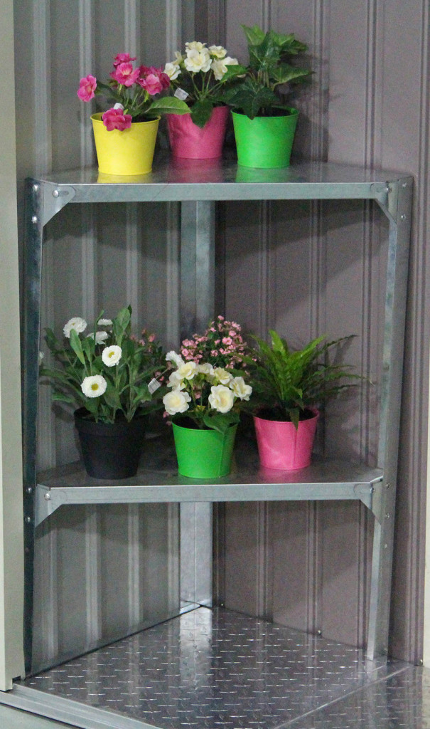 TIPP: Helyezze a polcot a G21 üvegház vagy kerti tároló sarkába. Így több tároló helyet kap és helyet takarít meg.