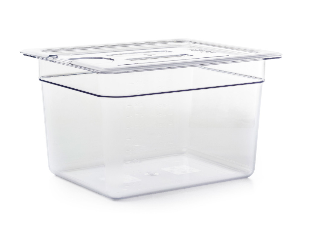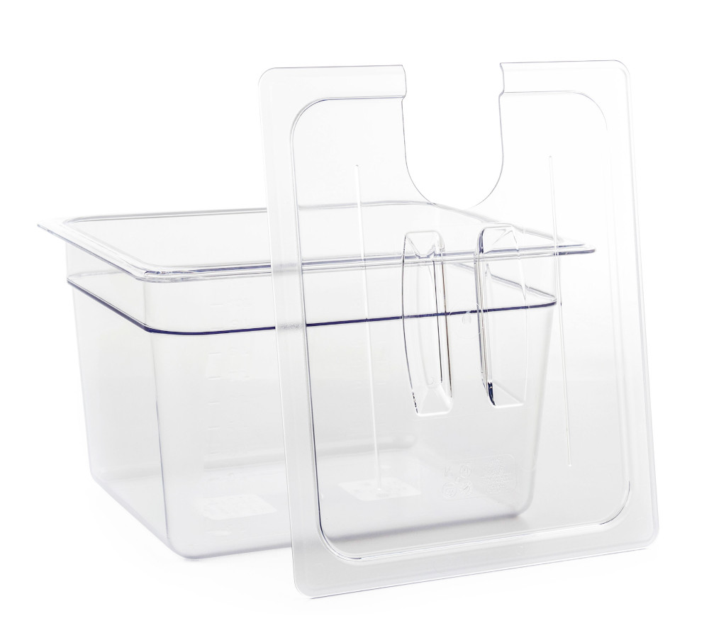 A sous-vide főzésre szolgáló G21 tartály rendkívül tartós polikarbonátból készül, és a fém edényekhez képest hatékonyabban tartja meg a hőmérsékletet, és hozzásegít a víz gyorsabb felmelegítéshez. A tartály polikarbonát anyaga megfelel a legszigorúbb biztonsági követelményeknek is és nem káros az egészségre. A felhasznált anyag nagy stabilitásának köszönhetően a tartály mosogatógépben is mosható, ami sok időt és fáradságot takarít meg. Ezen kívül az edény olyan fedéllel rendelkezik, amelyet a G21 a sous-vide tűzhelyhez tervezték. Természetesen a fedél más sous – vide főzővel is használható.