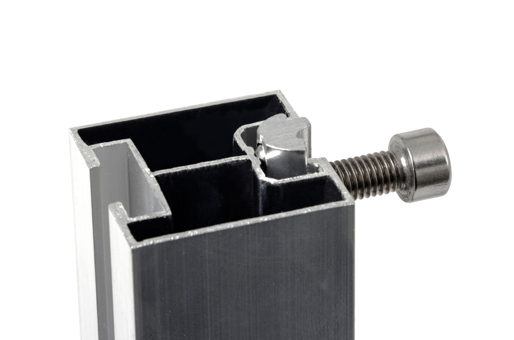 Az alumínium horonyanya rozsdamentes acél golyóval az oldalsó és a középső lefogatók rögzítésére szolgál a szerelősín horonyába, M8 menet.