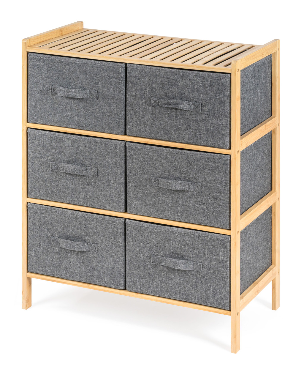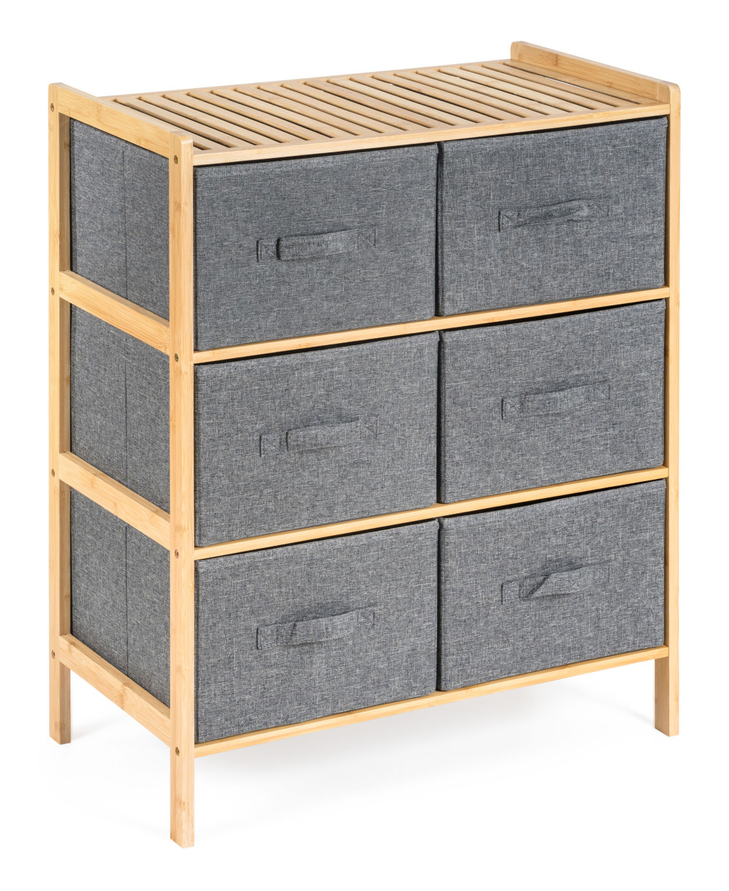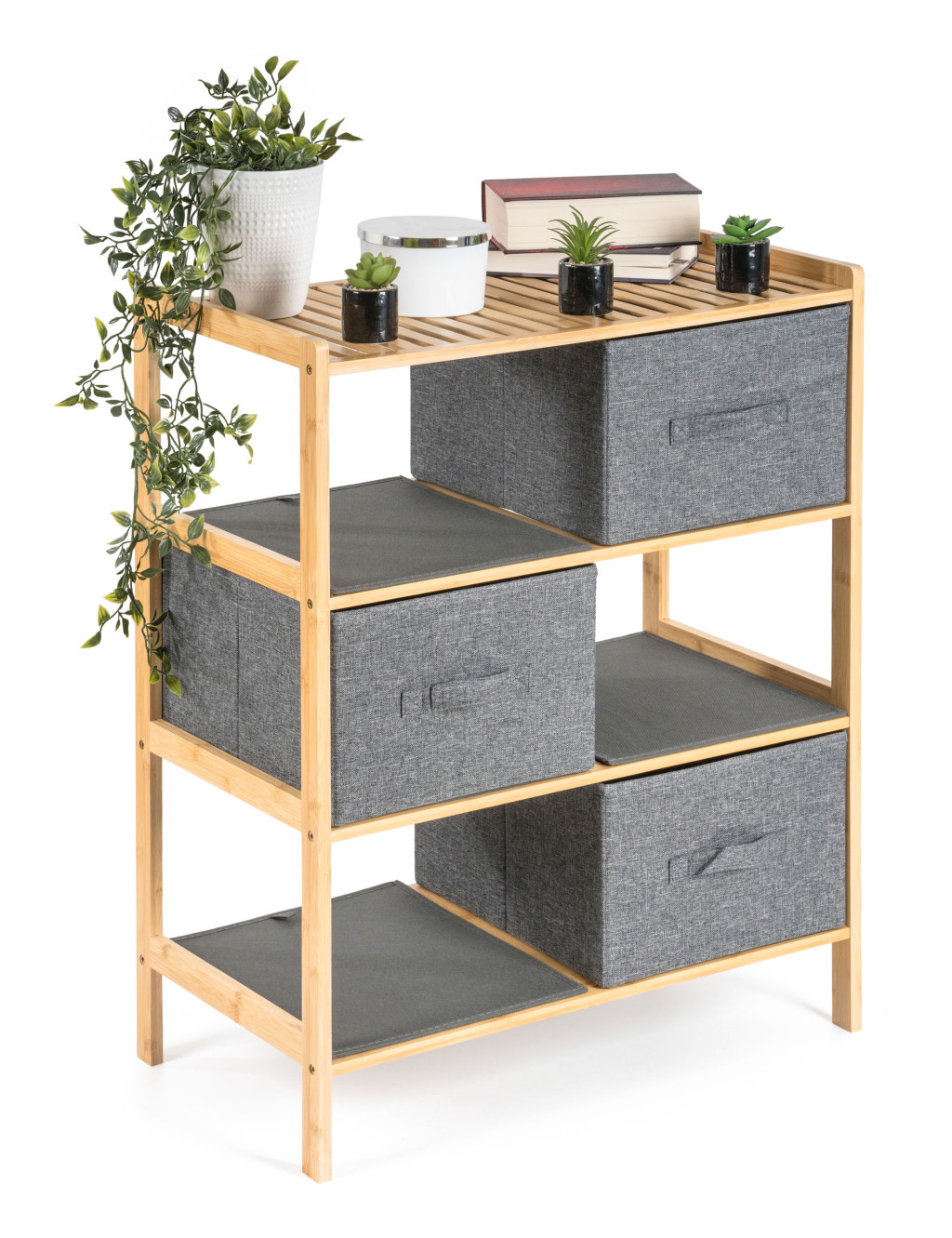 A bambusz meglepően könnyű, így könnyedén kezelheti az egész állványt kosarakkal. Ugyanakkor elég erős ahhoz, hogy elviselje a nagyobb terhelést. Emellett a bambuszfa egyik kiváló tulajdonsága a nagy nedvességállóság a és természetes rezisztenciája a baktériumokkal és gombákkal szemben, így nem kell aggódnia az elhelyezés miatt. a fürdőszobában vagy a mosókonyhában.