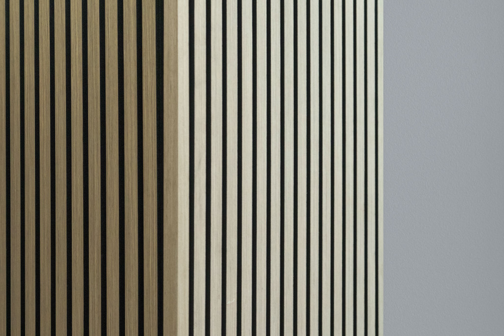 A természetes tölgy színű G21 befejező léc ideális az akusztikus panelburkolatok elegáns befejezéséhez.