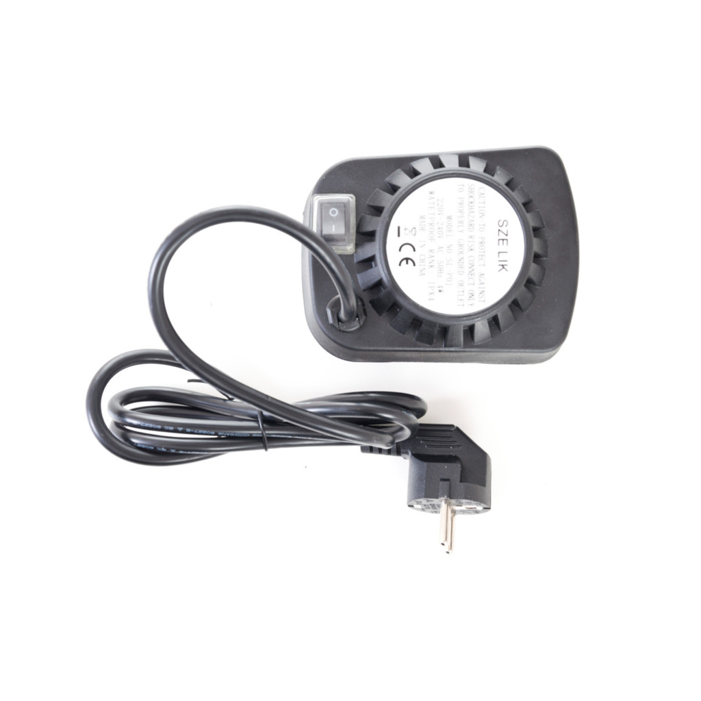 Az egyik oldalán a nyárs levehető műanyag tartóval van ellátva, amelyen egy praktikus szem van a rögzítésre. A másik oldalán találhatóa műanyag tokban lévő motor, amelyen a ki-/bekapcsolás gomb van elhelyezve. A 230 V teljesítményű motort egyszerűen csatlakoztathatja az áramkörre a kb. 125 cm hosszú kábel segítségével. A motoros nyárs gyorsasága 2 fordulat / perc, hogy a készített étel ne égjen le és egyenletesen süljön.