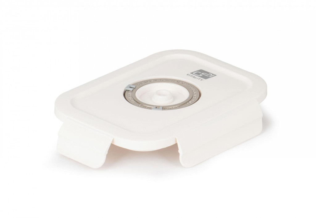 A vákuumszeleppel és dátumbeállítóval ellátott tető segít nyomon követni, mikor vákuumoztuk az ételt vagy meddig tartható. A vákuum egyszerűen kiengedhető a szelep enyhe megnyomásával.