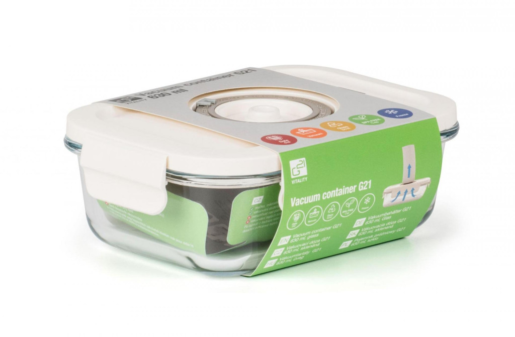 Élvezze az egyszerű és kényelmes vákuumozást friss vagy kész ételekhez a G21 630 ml-es vákuumos üvegedény segítségével. Meghosszabbítja az ételek eltarthatóságát, megőrzi frissességüket, természetes ízüket, illatukat és legfőképpen az értékes tápanyagokat. Az edény nagy előnye a sokoldalú felhasználás – hűtéshez, fagyasztáshoz és (tető nélkül) sütéshez is alkalmas.