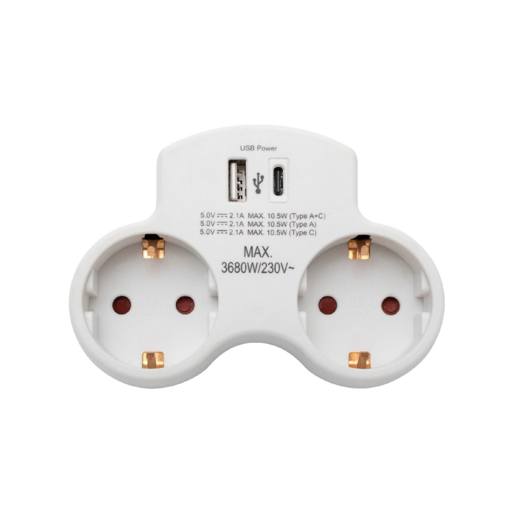 A HOME TPF2USBC hálózati töltő ideális választás minden otthonba és irodába, ahol fontos a hatékony töltés, a megbízható csatlakozás és a maximális biztonság. A készülék USB-C és USB-A csatlakozóval is rendelkezik, amelyek 5 V DC / max. 2,1 A teljesítményt biztosítanak, emellett 2 db földelt hálózati aljzatot kínál gyermekvédő zsalukkal, így több eszköz egyidejű használata is kényelmesen megoldható.