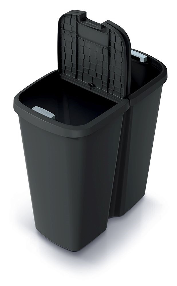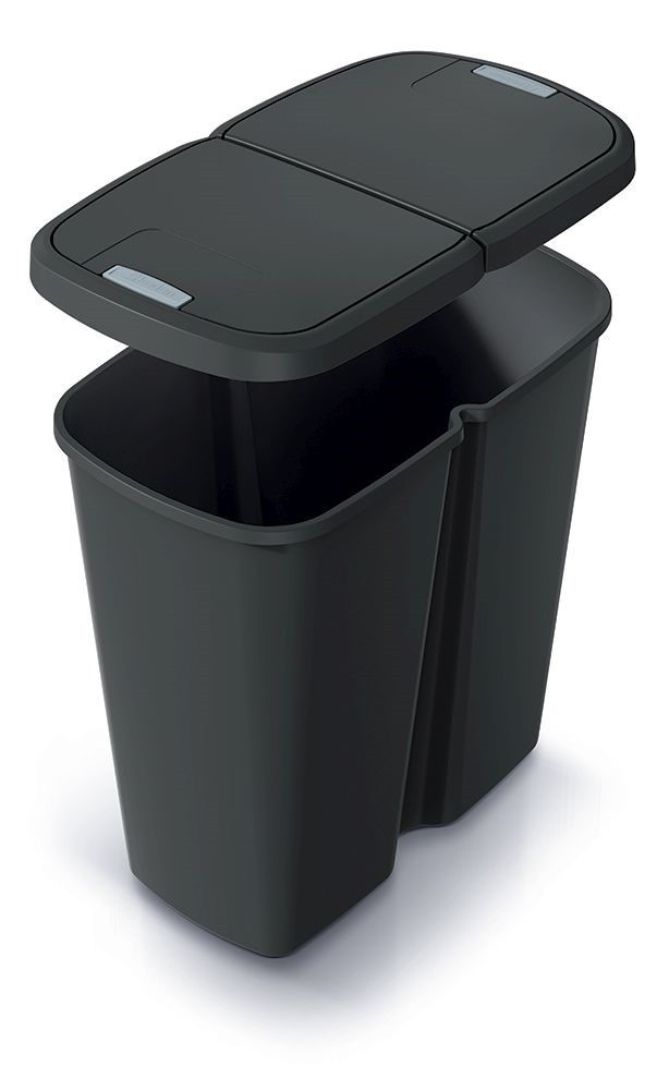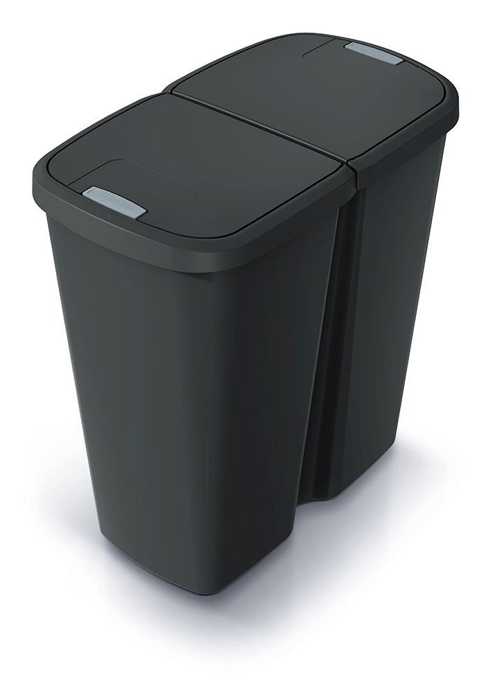 A Prosperplast COMPACTA Q DUO hulladékgyűjtő egy nagy belső tartályból áll. Ennek ellenére megkönnyíti a hulladékok válogatását otthon és az irodában. Fel van szerelve egy dupla, nyomógombos nyitású tetővel, amelyre egy vagy akár két szemeteszsákot rögzíthetünk. Például az egyikbe vegyes hulladékot, a másikba pedig műanyagot vagy papírt dob.