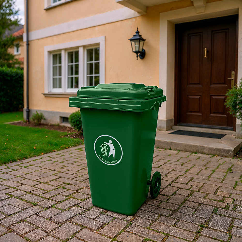 Könnyű mozgatás: A hulladéktárolóhoz tartozó tömör gumikerekek és ergonomikus fogantyú lehetővé teszik a könnyű mozgatást, így egyszerűen áthelyezhető vagy üríthető.