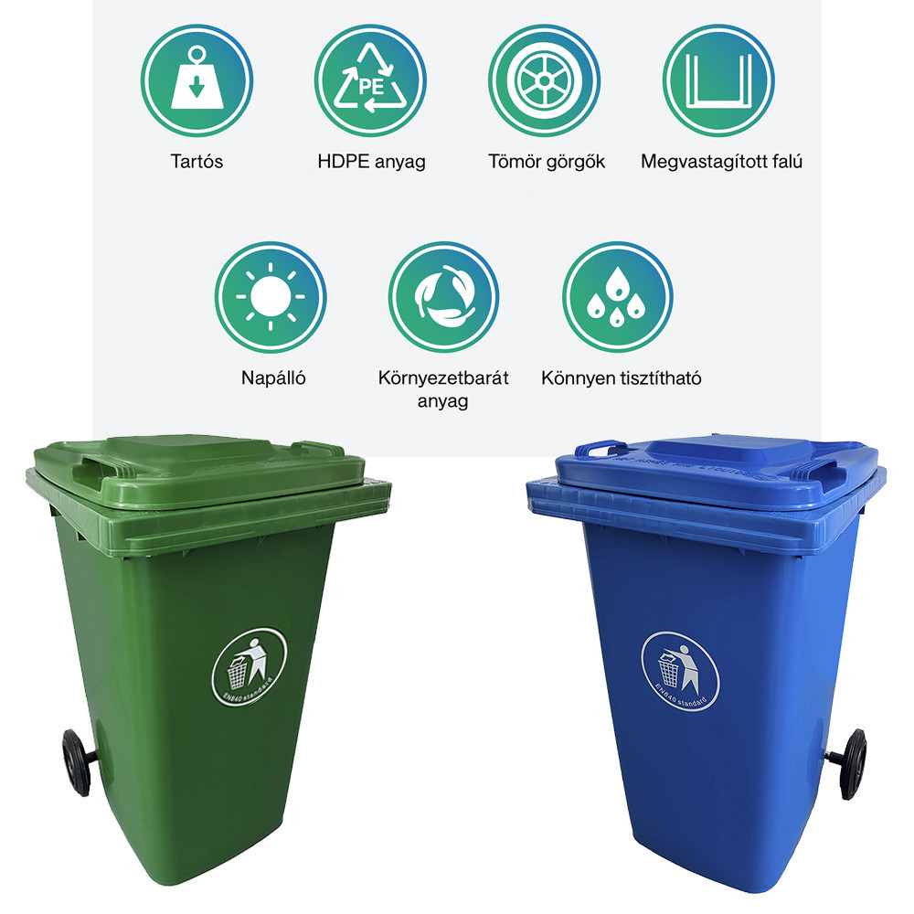 • Űrtartalom: 120 liter, ideális a napi hulladékgyűjtéshez.