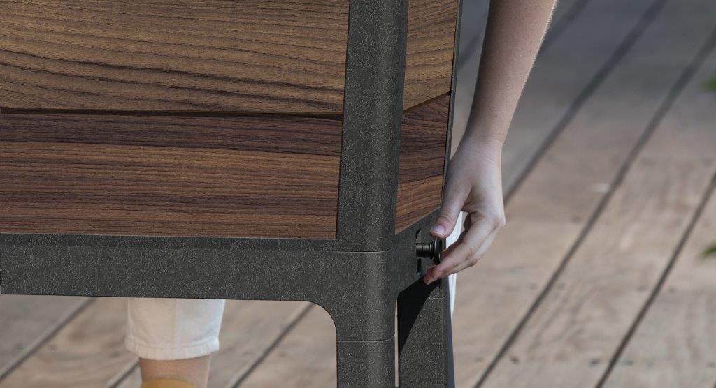 A Keter Deco Elevated virágláda elegáns brazilian árnyalatban kényelmes kertészkedést biztosít hajolgatás nélkül. A 110 literes űrtartalom, a beépített öntözőrendszer és a praktikus alsó polc tökéletessé teszi zöldségek, fűszernövények vagy dísznövények termesztésére teraszon, erkélyen vagy a kertben.