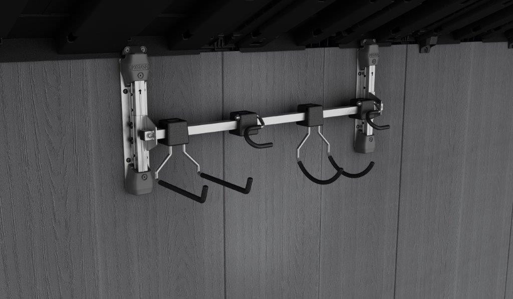 Az akasztó horganyzott acélból készült, amely ellenáll a víznek és a rozsdának. Emellett műgyanta bevonattal van ellátva, amely védi az akasztott tárgyakat a karcolásoktól. A kampók pozíciója állítható az egyéni igényeknek megfelelően, mivel elcsúsztathatóak. Takarítson meg tárolóhelyet kerti házában, és válassza a Keter akasztót.