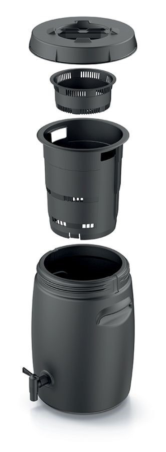 - 1x komposztáló (fedéllel, belső tárolókkal és csappal együtt)
