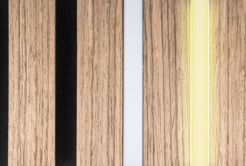 A megfelelően kiválasztott világítás hangulatot teremthet, és kiemelheti a belső részleteket. A LED világítás az akusztikus panelekben vizuális élményt nyújt, emellett jelentősen energiát és pénzt takarít meg. A dizájnos lamellás burkolat és a könnyű profil kombinációja gyönyörű és praktikus design elemet alkot. Nézze meg, milyen előnyei vannak.