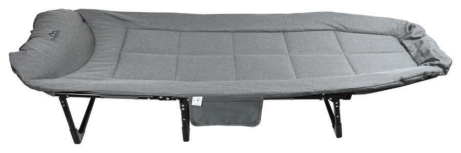Lehátko zajišťuje stabilitu i komfort díky pevné konstrukci a měkké výplni. Zádovou část si přizpůsobíte podle potřeby, takže si užijete relax v jakékoliv poloze. Díky skládací konstrukci lehátko snadno přenesete nebo uskladníte. Navíc využijete praktickou kapsu na boku pro drobné předměty.