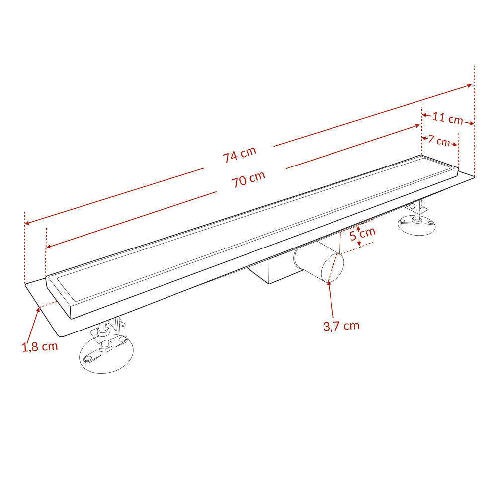 A Linea prémium minőségű rozsdamentes acél zuhanyfolyóka tökéletes választás fürdőszobájba. Rozsdamentességének köszönhetően nem szineződik el, ennek köszönhetően évekig élvezhetjük használatát. Több méretben is kapható a termék. Burkolható fedlappal összeállított kivitel, ezáltal a zuhanylefolyóka a padló burkolattal megegyező lehet.