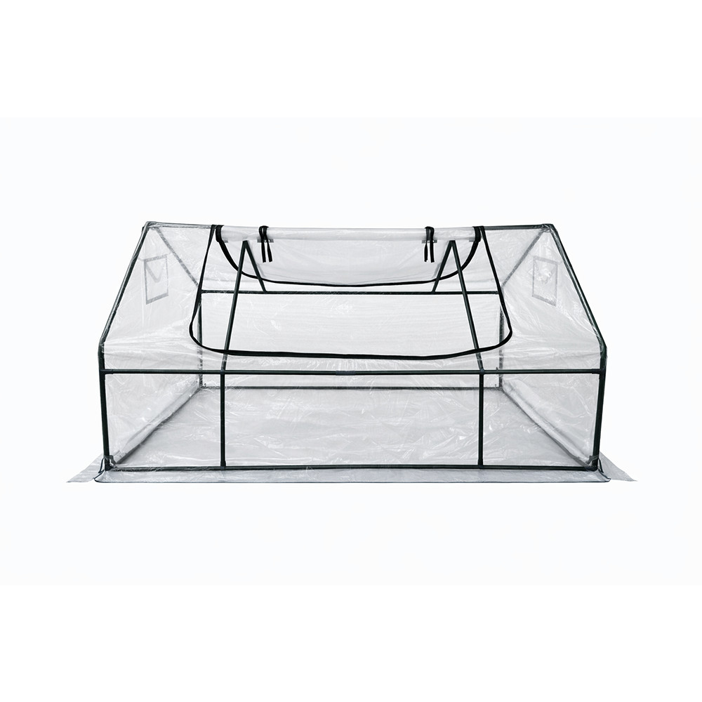 A 16×0,5 mm-es csövekből készült váz masszív szerkezetet alkot, amelyre a fólia feszesen rögzíthető. A feltekerhető nyílás és a cipzáros bejárat könnyű hozzáférést kínál a növényekhez, és lehetőséget ad a szellőzés szabályozására az adott növény igényei szerint.