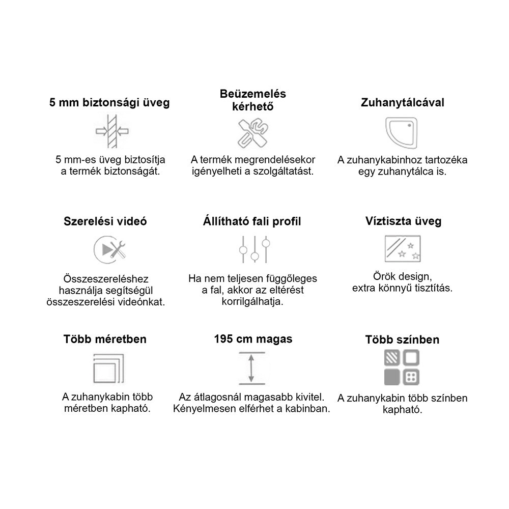 - Magasság: 195 cm (zuhanytálcával együtt)